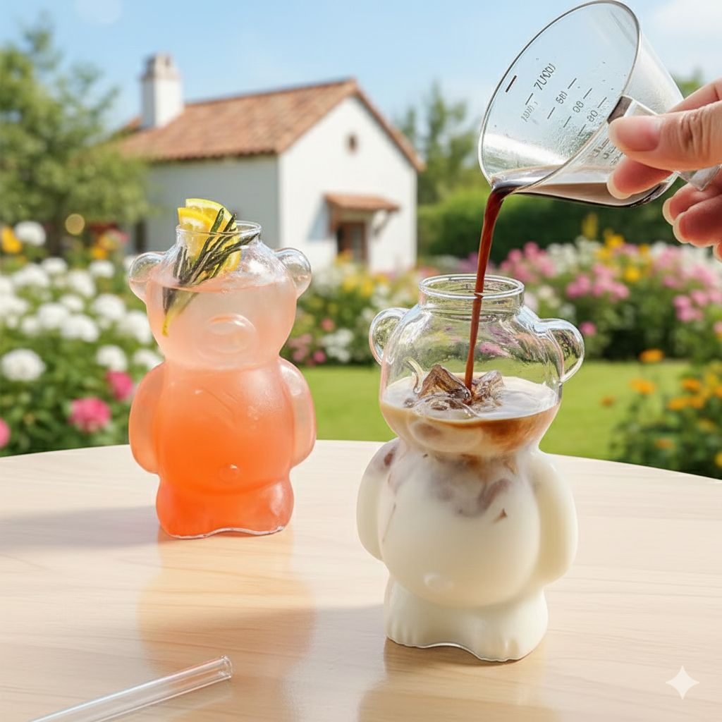 O Copo Urso Aura une design lúdico e elegância contemporânea. Produzido em vidro transparente, transforma qualquer bebida em um detalhe decorativo, ideal para cafés gelados, chás, sucos ou drinks. Uma peça criativa que adiciona personalidade à mesa sem perder a sofisticação.